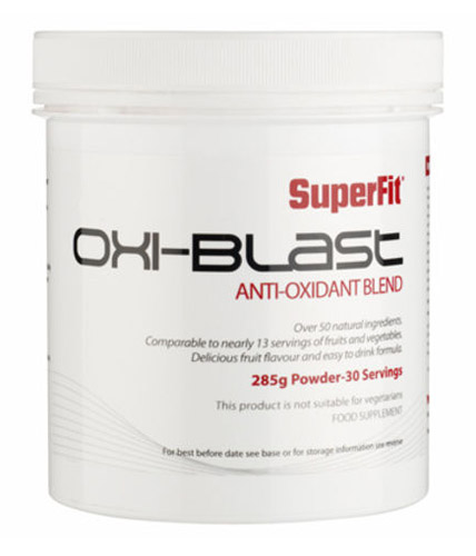 SuperFit Oxi-Blast je izjemna, unikatna mešanica super hrane in ena najnaprednejših formul prehranskih dopolnil zadnjih let. Prah zelenjavno-sadne mešanice, iz katere nastane slasten in zdrav napitek, je bil ustvarjen za super-antioksidativno podporo vsak dan, za vsakogar. Ena sama porcija zagotovi antioksidativno vrednost skoraj 13 porcij sadja in zelenjave, saj vsebuje kar 50 naravnih sestavin, ki sestavljajo izjemno formulo Oxi-Blast naravne antioksidativne mešanice.