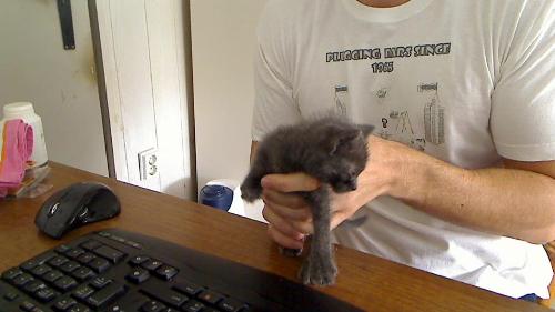 pred cca 23 urami je nekdo na facebooku objavil, da je našel malo sivo mucko, ki jo bo poskušal oddati, je pa menda še zelo mala.
