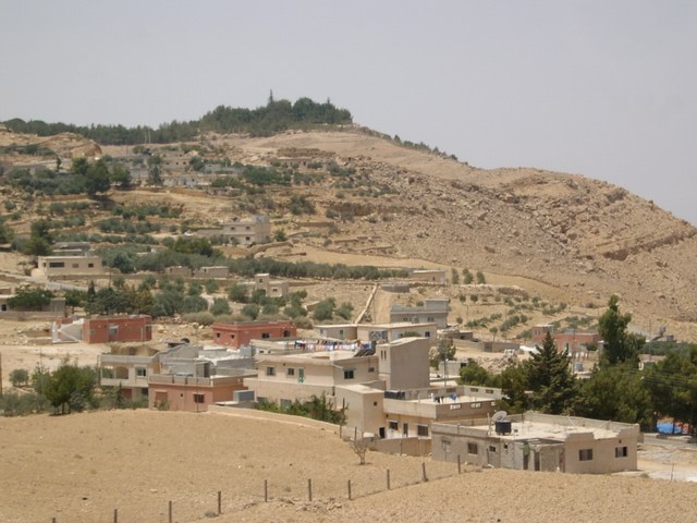 1. Po nočnem pristanku v Aqabi in iskanju zasilnega hostla (luknje :)) za prenočiti, sva se odpravila z minibusom proti Petri. Na sliki je tipično obcestno mestece.
