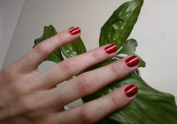 Meni je všeč, nekaj damskega je na njem. Všeč mi je, ker ni popolnoma mat, ampak je ravno toliko žameten, da krasno uravnoteži shimmer. Barvno bo sicer najbolj sodil v jesenski čas, ampak tudi zdajle gre.