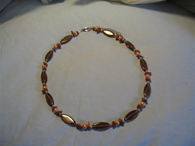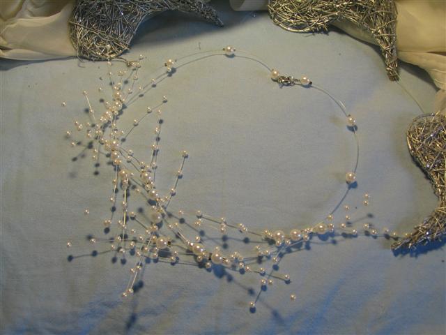 Iz steklenih perl-kapljic. Je pa ta ogrlica moja lastna, jo imam doma in sem se odločila da je ne dam naprej, ker je totalen unikat in ne morem izdelat še ene (perle so namreč zbrane iz različnih koncev in dvomim da mi jih bo še kdaj uspelo toliko zbrat skupaj...se jih ne da kupit v paketkih. Ves material na slikah je ali steklo, školjke ali plastične perle.