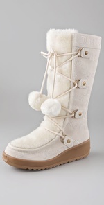 Jaz sem pa končno najdla nove škornjčke za letos. Vijolčni, brez zadrge, ampak dovolj široki, da gre moja noga notri in pa iz semiša. Super so