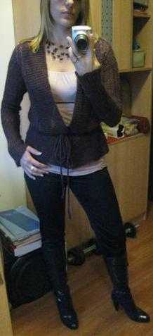 +temno rjavi škornji & bež (umetno)usnjena jakna