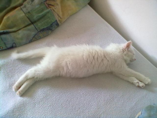Leva muca na sliki ima levo oko drugačne barve-sinje/svetlo modro.