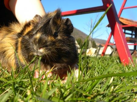 ), pa tudi zdi se mi, da ji z rednim česanjem dlaka manj izpada. Umivam jo pa zato, ker je res prava pujsa in uživa v valjanju po svojih kakcih (si noče dopovedat, da ima veliko kletko ravno zaradi tega, da ji ni treba ležat kjer največ kaka