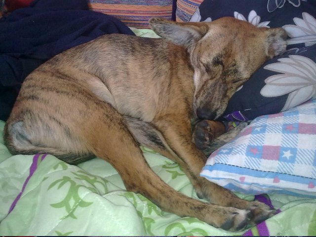 . Pa tudi padajočega snega ne mara (sklepam, da zaradi tega, ker ji zaide v ušesa). Tako da trenutno namesto, da bi šle ven na jutranjo potrebo, ji pustim, da še malo poležava (namreč do sedaj ni pokazala nikakršnega interesa po kakem zračenju