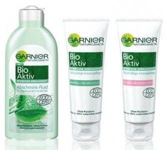Garnier Bio Aktiv linija trenutno vključuje tri izdelke (Garnier Bio Aktiv Schützende Intensivpflege krema za mešano kožo, Garnier Bio Aktiv Reichhaltige Intensivpflege krema za suho kožo in Garnier Bio Aktiv Abschmink-Fluid čistilno mleko za odstranjevanje ličil), ki imajo visoko vsebnost aloe vere, ki kožo vlaži in pomirja in je bogata z vitamini in minerali kot so kalcij, magnezij in cink.