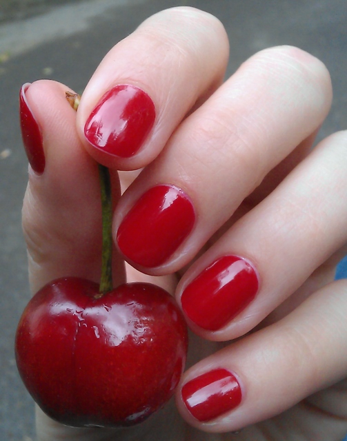 Odtenek, nanos, nohti...pa še češnja. Se slinim.