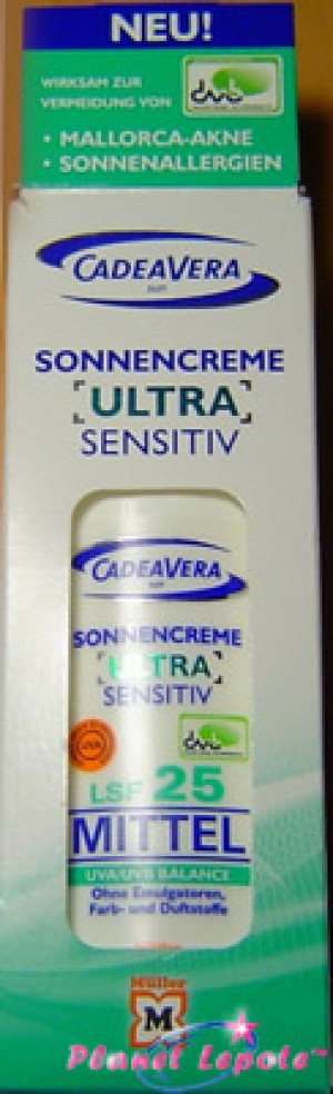 Sama krema je precej gosta, bela, maže se nekje srednje, pri nanosu in razmazovanju je treba biti malo previden, drugače si ves flekast. Sam alkohol se sprva sicer malenkost voha, potem pa izpuhti. Krema je na koži precej bela, jaz jo uporabljam na mojih ekstremno belih nogah in se niti ne opazi. Za ljudi s temnejšo kožo pa vsekakor ne bo. Pred sončnimi žarki ščiti odlično, kljub faktorju 25 se mi je zaenkrat dobro obnesla za celodnevno pohajkovanje, še zvečer se je videl ta rahli beli filter na nogah.Embalaža je super, pumpica na potisk, se ne paca in je odlična za doziranje. Podobno embalažo imajo tudi Sante sončne kreme.Kot veliko mineralnih krem izredno bela krema, jaz jo bom porabila do konca, iščem pa alternativo.3,45€ za 50 ml v MüllerjuVsebuje korenčkovo olje. SPF 15. INCI: ?