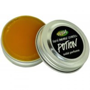 Potion sem naravnost oboževala, ko je bil še losjon za telo. Ko so ga pri Lushu ukinili, mi je bilo zelo žal, ker lepše dišečega losjona za telo pač ni (trenutno se ga da ponovno dobiti preko Lusheve angleške spletne strani, vnovič so ga dali v prodajo kot del svoje retro kolekcije). V redni prodaji je sedaj na voljo kot parfum v trdi obliki in do neke mere mi je kot tak še bolj všeč (bi se pa znala hitro premisliti ali bila neodločena, če bi se znova dokopala do losjona). Ob nakupu sem bila nekoliko skeptična, pričakovala sem, da bom sicer lahko ponovno uživala ob prekrasnem cvetličnem vonju, da pa bo užitek kratkotrajen, ker se bo hitro razdišal. Pa se ne, izredno dolgo ga voham na sebi, včasih tudi še po večernem tuširanju, potem ko me je njegov vonj razveseljeval cel dan. Dišava sama je močna, a ne težka, cvetlična na sladek način, ne pa tudi zadušljiva (vonjev očitno ne znam dobro opisovati ;)). Po teksturi nekoliko spominja na vazelin, jaz ga nanesem na vrat in zapestja (na pulzne točke) kot običajno vse parfume. Uporabljam ga zelo pogosto, pa se mu po dobrem mesecu sploh ne pozna, da ga kaj manjka. Spravljen je v lično posodico iz mehke pločevine, enako, kot jo imajo Lushevi balzami za ustnice (meni so te posodice zelo čedne). Zaradi svoje majhnosti je izredno primeren za to, da ga vzamete s seboj, razlil se vam gotovo ne bo (čeprav imam pomisleke glede vročine, znal bi se stopiti, če bi bil dalj časa izpostavljen visokim temperaturam), pazite le, da ga ne izgubite v torbici. Cena (slabih 10 evrov) je za moje pojme (upoštevajoč majhno porabo in krasen vonj) smešno nizka. Skratka, priporočam, vseeno pa ga prej povohajte in preizkusite (v Lushu imajo vedno na voljo testno embalažico), če vam vonj odgovarja. Jaz ga bom gotovo ponovno kupila, ko mi ga bo zmanjkalo, če pa ga bodo imeli kdaj namen ukiniti, si bom naredila pravo vojno zalogo!
