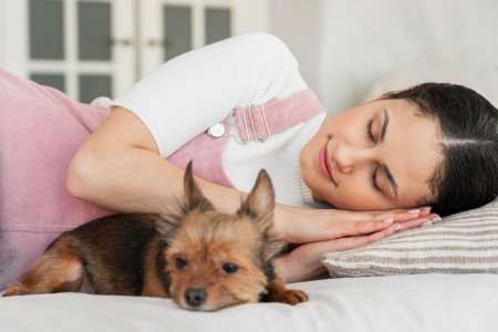 - Manj motenj: moški partnerji pogosto smrčijo, kradejo odejo in zavzamejo preveč prostora. Psi (seveda odvisno od velikosti) se običajno prilagodijo prostoru in ne motijo ciklov spanja lastnice (oz. vsaj ne v tolikšni meri).