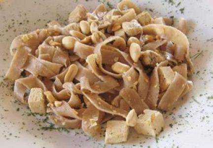 Hvala.* Arašide je najbolje dobiti nepražene in nesoljene. Rezance sem imela pa ene domače, s tržnice. Romy pokukaj v kakšno min eko bio trgovinco za pz rezance.