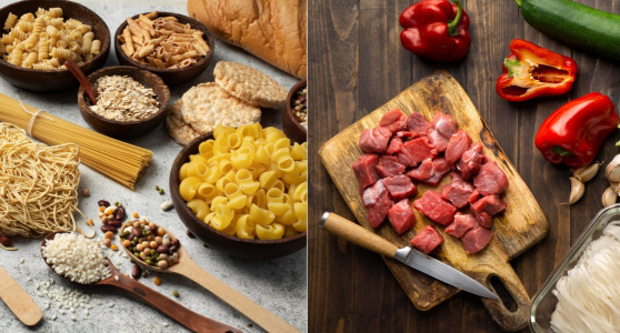 - 6 do 11 obrokov žit in škroba, vključno s kruhom, žitom, rižem in testeninami;