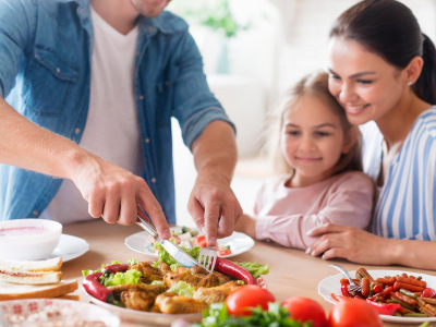 Praviloma skupna prehrana vodi do bolj zdrave izbire hrane. Po drugi strani pa prehranjevanje zunaj doma spodbuja slabše prehranjevalne navade. Otroci, ki jedo zdrave in hranljive jedi v bližini svojih staršev, imajo manj verjetnosti, da bodo debeli v najstniških letih.